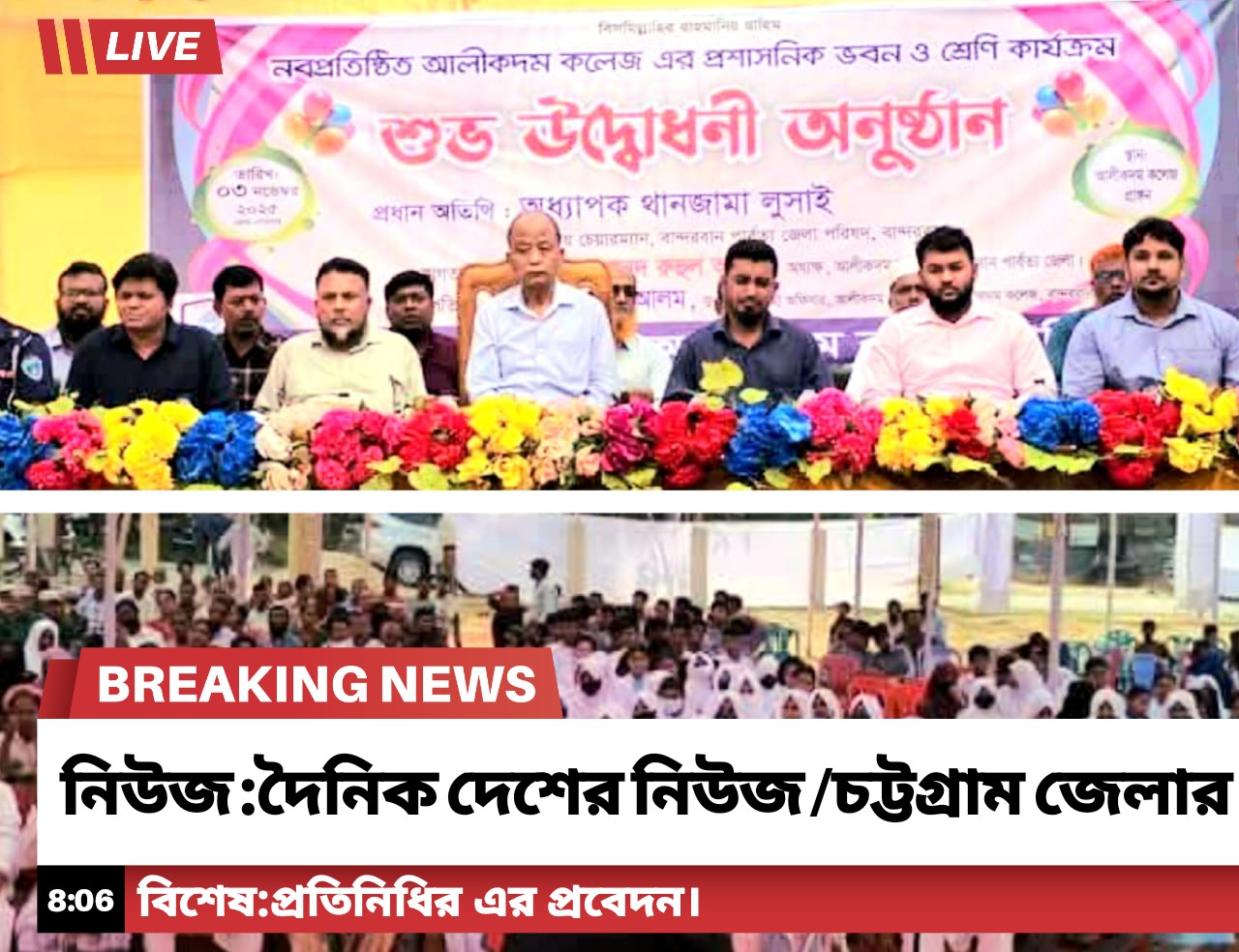 আলীকদম কলেজের নবনির্মিত প্রশাসনিক ভবনের উদ্বোধন সোমবার (৩ নভেম্বর) অনুষ্ঠিত হয়েছে।