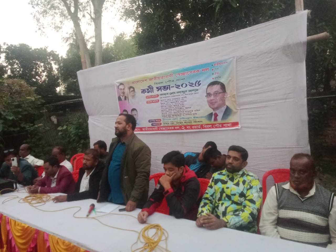 সভায় সভাপতিত্ব করেন মোঃ মমিনুল ইসলাম, আহবায়ক, স্বেচ্ছাসেবক দল বিরল পৌর শাখা।
