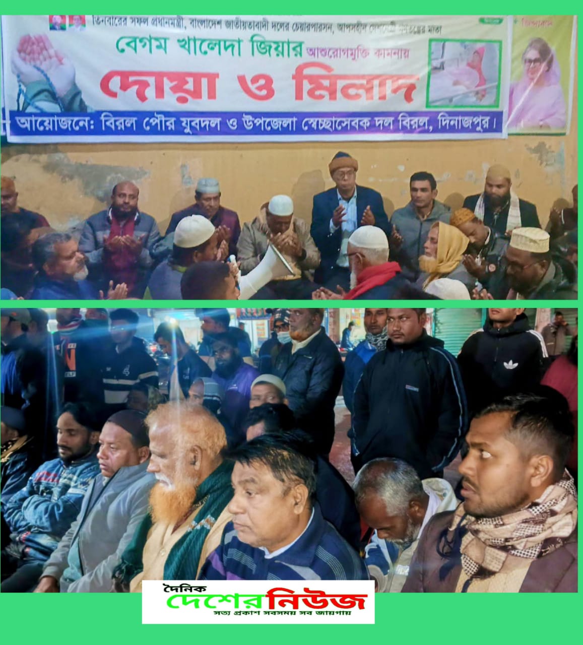 বিরলে পৌর যুবদল ও উপজেলা স্বেচ্ছাসেবকদলের আয়োজনে বেগম খালেদা জিয়ার রোগ মুক্তি কামনায় দোয়া মাহফিল অনুষ্ঠিত,