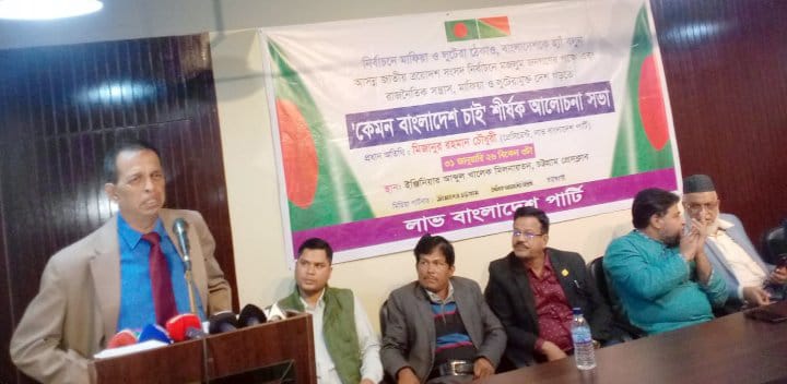 নির্বাচনে মাফিয়া ও লুটেরা ঠেকাও, বাংলাদেশ কে হ্যাঁ বলুন স্লোগানে লাভ বাংলাদেশ পার্টির চট্টগ্রাম মহানগর আয়োজনে চট্টগ্রাম প্রেস ক্লাবে ‘কেমন বাংলাদেশ চাই’ শীর্ষক আলোচনা সভা অনুষ্ঠিত হয়।