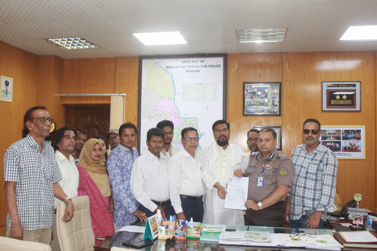 নিরাপদ খুলনা চাই সামাজিক সংগঠনের পক্ষ থেকে খুলনা মেট্রোপলিটন পুলিশ কমিশনার মোহাম্মদ জাহিদুল হাসান কে স্মারকলিপি প্রদান করা হয়েছে, ১৬ই মার্চ বেলা ১২ টায় কেএমপি কমিশনার কার্যালয়ন, স্মারকলিপিতে খুলনায় আইন-শৃঙ্খলা পরিস্থিতির অবনতি রোধে দ্রুত ব্যবস্থা নেওয়ার দাবি জানানো হয়েছে। স্মারকলিপিতে উল্লেখ করা হয়,সম্প্রতি খুলনা নগরীতে খুন, চুরি, মাদক ব্যবসা, চাঁদাবাজি সহ কিশোর বাহিনীর দৌরাত্ম্য সামাজিক নিরাপত্তায় বড় হুমকি হয়ে দাঁড়িয়েছে নগরীতে প্রতিদিন দুরবৃত্তিদের হামলায় আহত, নিহত, সংঘর্ষের মতো ঘটনা ঘটেই চলেছে পুলিশ প্রশাসনের কাছে দাবি জানানো হয়েছে হয়, আইন-শৃঙ্খলা বাহিনী তারা যেন এই পরিস্থিতি নিয়ন্ত্রণে দ্রুত ব্যবস্থা গ্রহণ করেন,স্মারকলিপি প্রদানের সময় উপস্থিত ছিলেন, - নিরাপদ খুলনা চাই সামাজিক সংগঠনের সভাপতি সরদার বাদশা, সংগঠনের সাধারণ সম্পাদক শেখ মোঃ দেলোয়ার, সংগঠনের উপদেষ্টা মোঃ আব্দুর রহমান, নির্বাহী সভাপতি নাজমুল তারেক তুষার এস এম মোহাম্মদ আলীর, মশিউর রহমান টুকু, আনোয়ার হোসেন, চুন্নু খন্দকার, আ্যাড কিংকর রাহা, সহ-সভাপতি তালুকদার মোহাম্মদ হেলালুজ্জামান,, লবণচড়া থানার সভাপতি হোসেন সুমন, মোহাম্মদ সাইফুল্লাহ বাবু, প্রচার সম্পাদক আব্দুল আলিম, সহ প্রচার সম্পাদক মনিরা ইয়াসমিন মনি, শিল্প বন্দর বিষয়ক সম্পাদক মোঃ তৈয়ব আলী, স্বাস্থ্য বিষয়ক সম্পাদক মোঃ রেজাউল ইসলাম রেজা, সহ ক্রিড়া ও সংস্কৃতি বিষয়ক সম্পাদক আফরোজা আক্তার মিম, মহিলা বিষয়ক সম্পাদক মনিরা বেগম, সহ মহিলা বিষয়ক সম্পাদক প্রীতি আক্তার লিজা,সহ সংগঠনের দায়িত্বশীল আরো অনেক নেতা কর্মীবৃন্দ। এ সময়